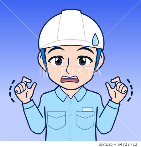 人物の無料イラスト素材 困り顔の男性現場作業員